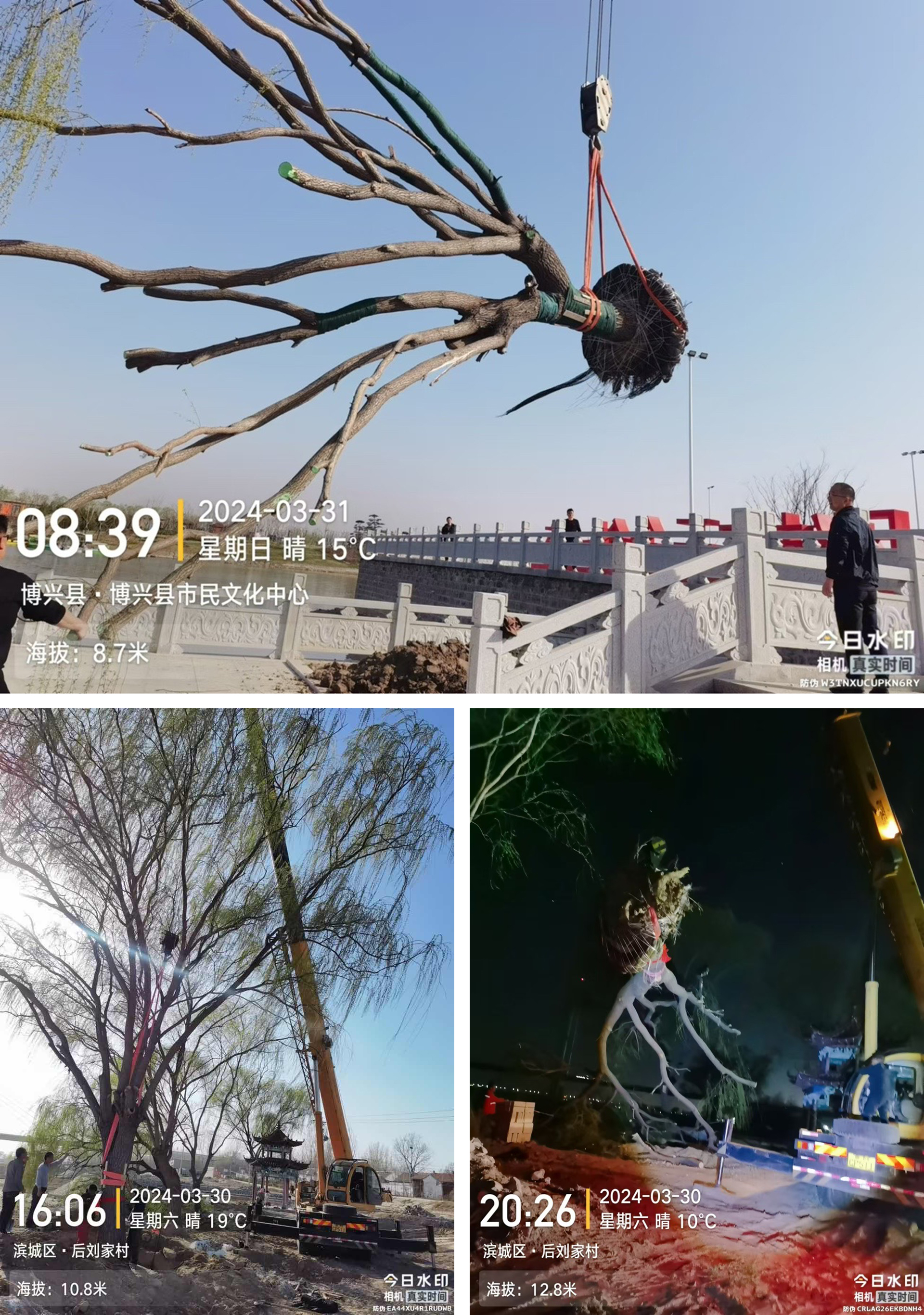 在博興縣市民文化中心,矗立著兩棵大柳樹,怎么從黃河灘運(yùn)到場(chǎng)地、怎么保證這么大的樹成活,是項(xiàng)目三部迫切需要解決的問題。“這是我們第一次施工這么大規(guī)格的苗木。上午在黃河灘選好苗子,晚上十一點(diǎn)開始起吊裝車,早上五點(diǎn)進(jìn)場(chǎng),種植好后每天早晚一個(gè)小時(shí)的噴淋,公司領(lǐng)導(dǎo)們也是天天來(lái)工地上,就怕苗子出現(xiàn)問題。”馬相鵬指著兩棵已經(jīng)“安家”的大柳樹說道。