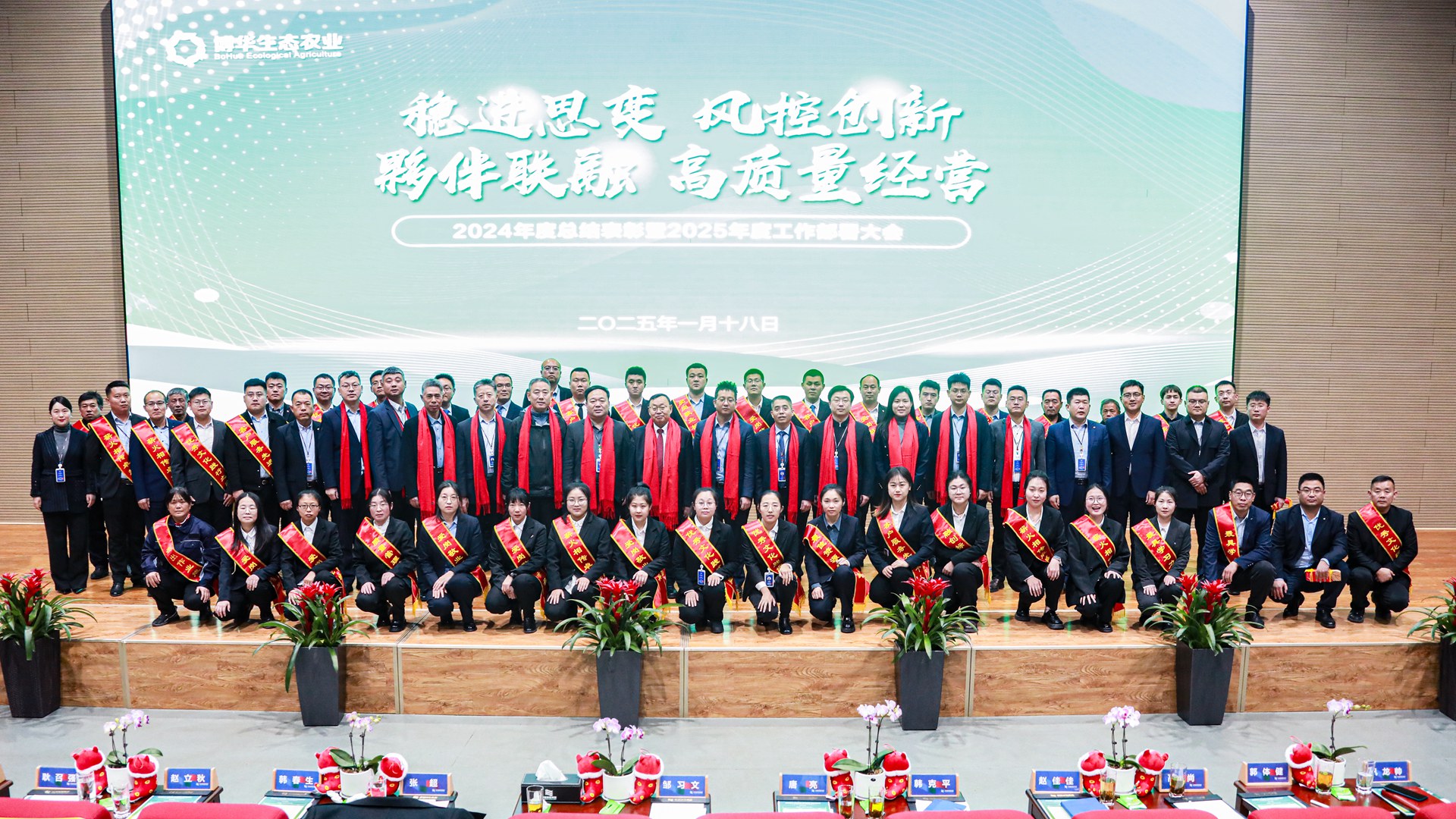 歲月并進,華章日新。1月18日,博華生態(tài)農業(yè)2024年度總結表彰暨2025年度工作部署大會在京博研究院學術報告廳隆重召開。集團董事、首席輪值總裁鄒習文,集團董事、審計監(jiān)察與風控管理委員會主任委員、首席信息官唐亮,集團首席行政官、博華董事韓春生,集團智造廠與安環(huán)能管理聯(lián)席會議總裁趙立秋,生活服務事業(yè)部總裁耿召強,集團監(jiān)事、博華監(jiān)事韓克平,集團人力資源管理融創(chuàng)聯(lián)席會議執(zhí)行長趙佳佳,韻味達公司董事兼總經理郭體健,博華生態(tài)農業(yè)公司中高層、員工代表參加會議,會議由博華生態(tài)農業(yè)產業(yè)融創(chuàng)總監(jiān)王金寶主持。
